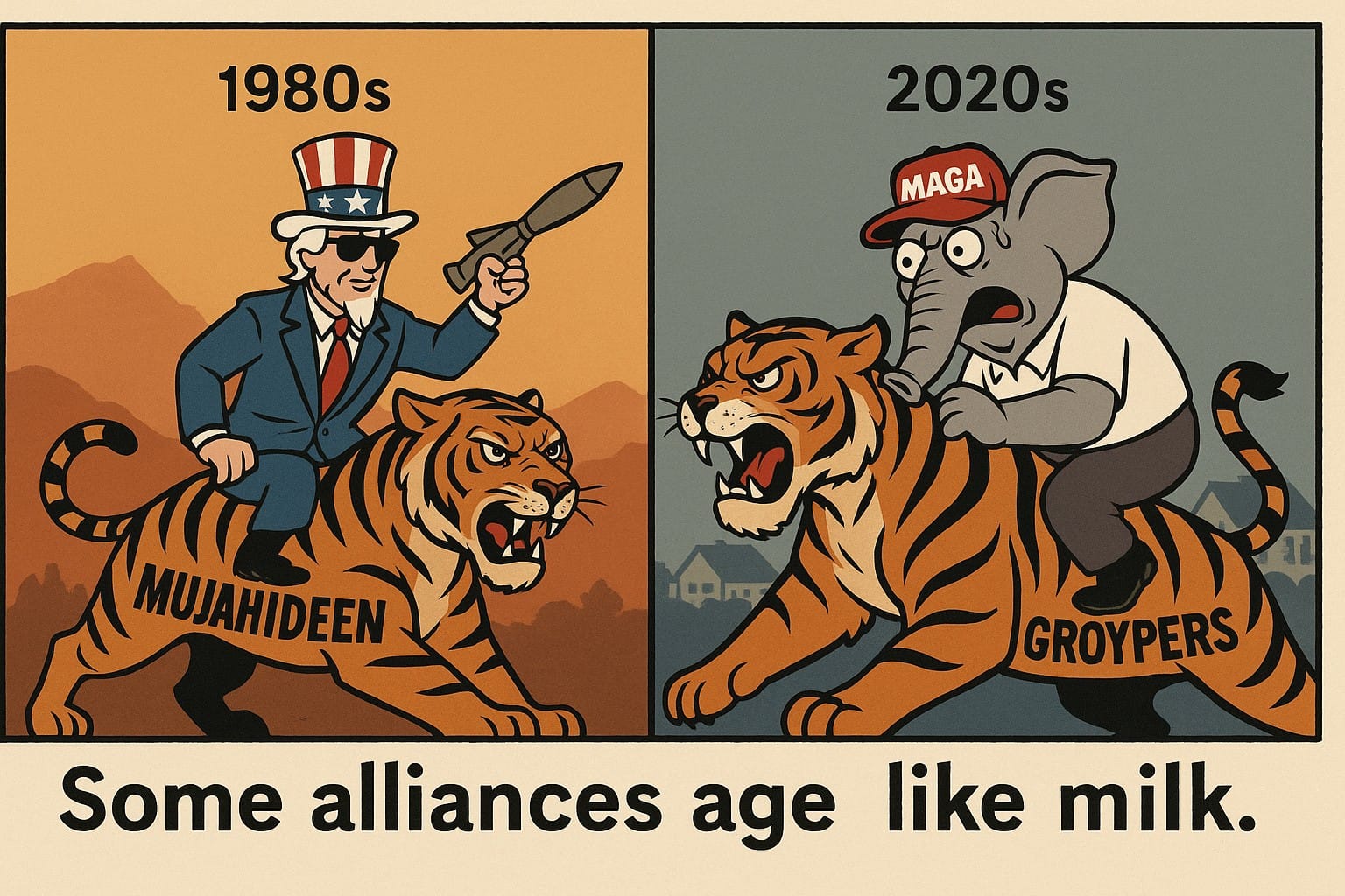 There's a uniquely American talent for repeating catastrophic foreign policy mistakes domestically—like fast-tracking imperial collapse just to see if the record can be broken. And here's the latest achievement: recreating the Mujahideen disaster, but with better Wi-Fi and worse hygiene.